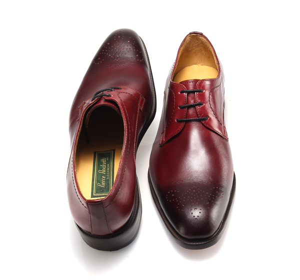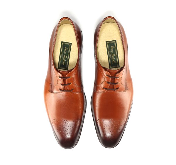 Calzado derby en piel de ternera misma que es tratada de forma artesanal y forrado totalmente de piel con sutiles detalles de brocado al frente, plantilla interior de piel, sombreado pintado a mano.